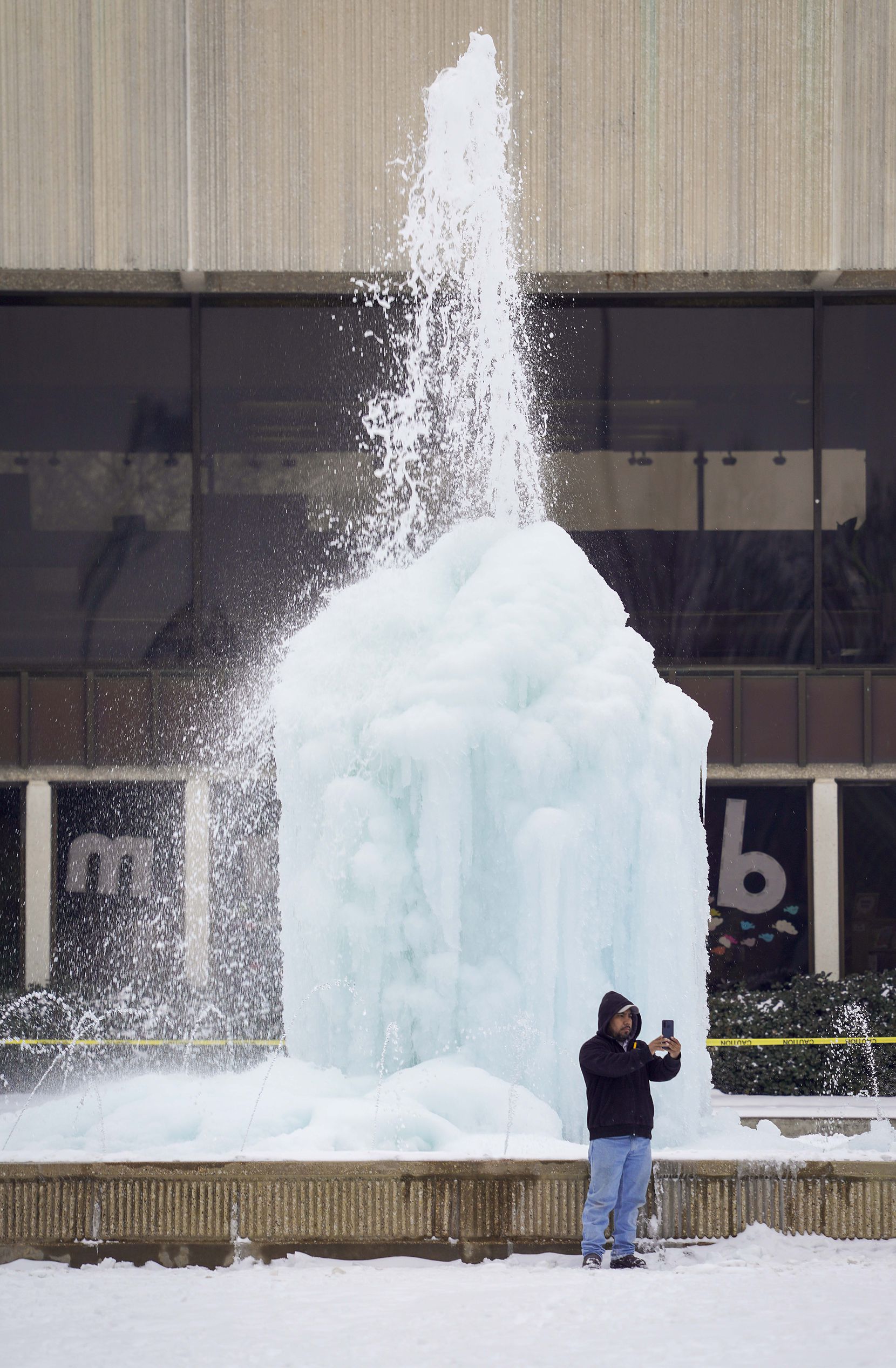 This is the water fountain at Pensive. It appears the misters on the fountain have frozen. @CityOfDallas @DallasParkRec have been notified. Thanks to a few of you for reporting this! pic.twitter.com/AQyqYp3XrJ