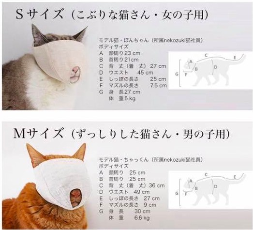 ▼日本人的發明一向很有創意,這款頭罩還分為不同的尺寸,並有多種顏色,貓奴們可以根據自家貓咪的情況選擇。