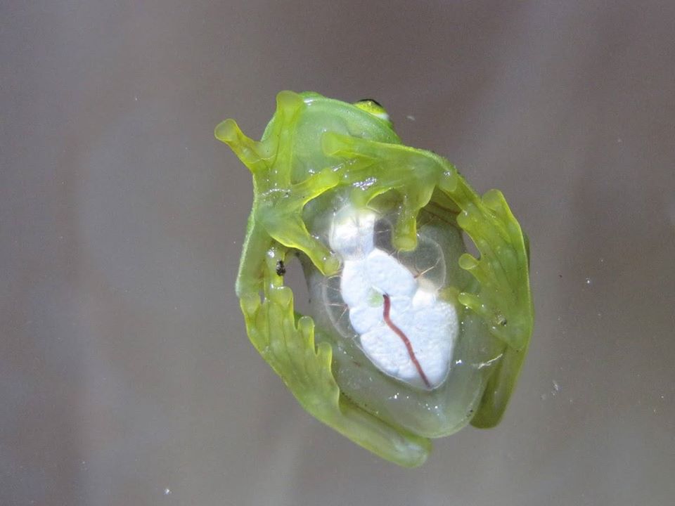 ▼網友們看到照片也覺得很驚奇,透明的青蛙雖然罕見,但並不是首次發現的物種。有人認為這是莫氏樹蛙,也有人認為這是弗氏玻璃蛙,因為弗氏玻璃蛙的腹部皮膚像玻璃,透過皮膚能夠看到內臟。BBC也分享過透明青蛙的照片,從下方拍攝確實能看到內臟。