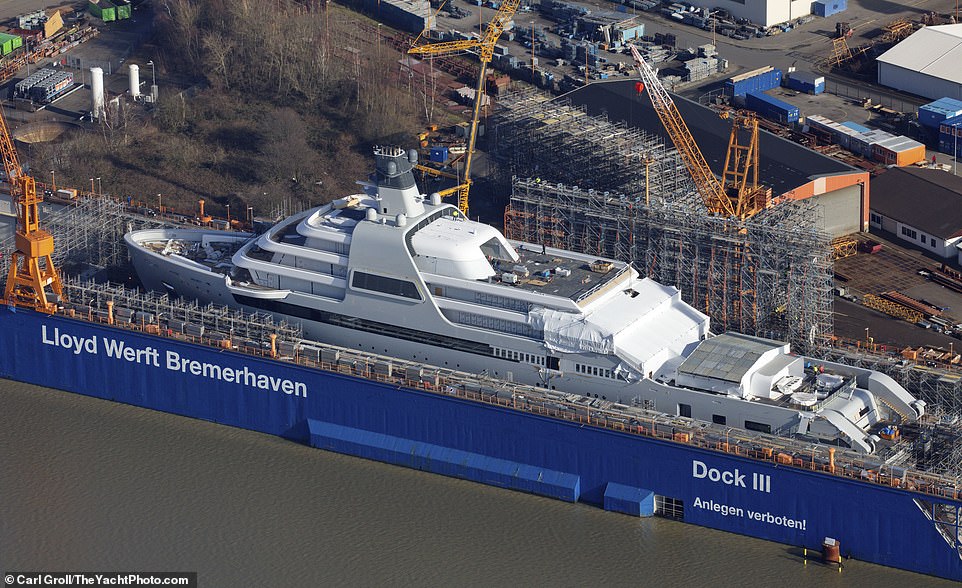 ▼遊艇上有很多豪華設施,包括泳池、按摩池和水療浴缸,還有直升機坪。現在它還在德國不萊梅港的一間船塢中建造。
