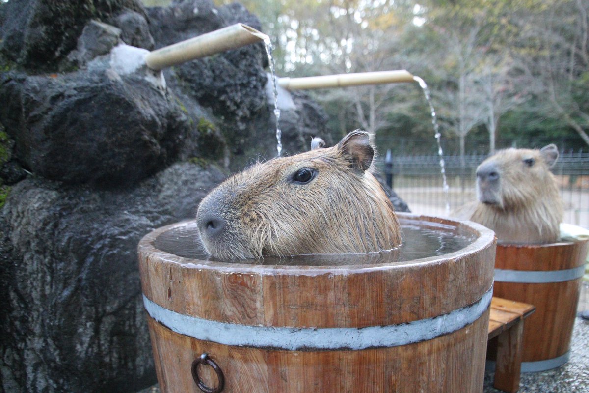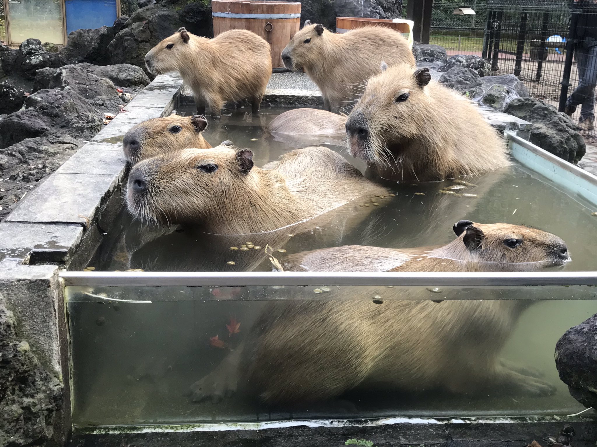 除了埼玉縣的兒童動物自然公園,想要近距離欣賞水豚泡溫泉的畫面,也可以考慮「五大水豚泡湯勝地」的其他幾個地方:栃木縣的那須動物王國、兵庫縣的神戶動物王國、靜岡縣的伊豆仙人掌公園和長崎縣的長崎BIO PARK!