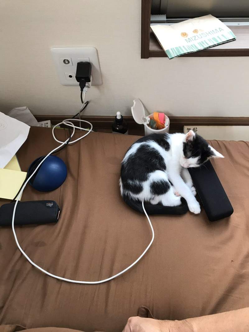 ▼「小貓睡在手機上,害我遲遲沒辦法伸手拿手機。」