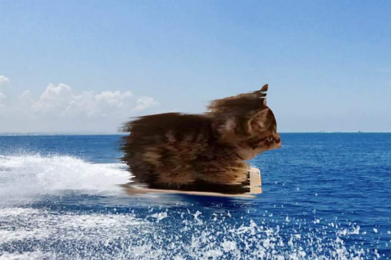 ▼這張照片在推特上擴散後,有人改圖讓貓咪乘手機衝浪。