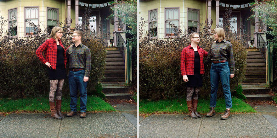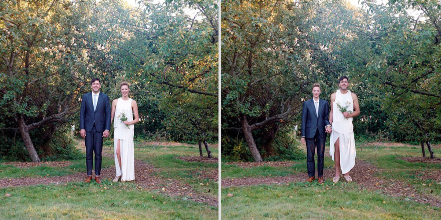 男友換上小禮服! 攝影師揪情侶們「換穿對方衣服」 全球戀人「靈魂互換」比情侶裝還閃♡