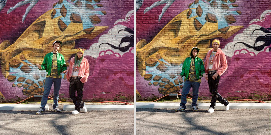 2021年03月02日最近社交影音平台上興起一股「情侶換裝」風潮。跟穿情侶裝放閃相比,情侶之間互換衣服拍照留念顯得更有趣味。其實早在2010年時,加拿大攝影師Hana Pesut就拍過相關主題的照片。當時他和一對情侶朋友去露營,突然想到換衣服來穿應該很好玩,於是拍下了第一組男女換裝照。