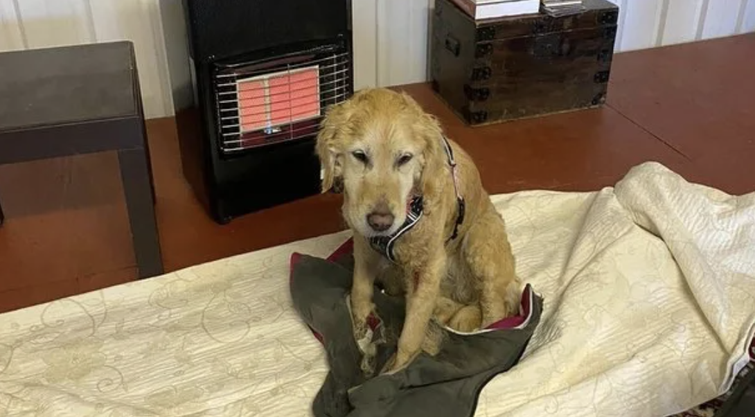 ▼這隻狗狗叫Neesha,已經失蹤2週了。 山上非常冷,Ciara和Jean就用多的外套將狗狗包起來保暖。Jean將狗狗扛在背上,一路走下山。他一共背著狗狗走了9.66公里才平安來到山腳下,想想就知道有多辛苦。