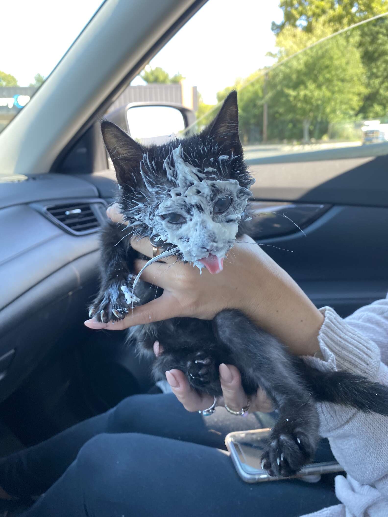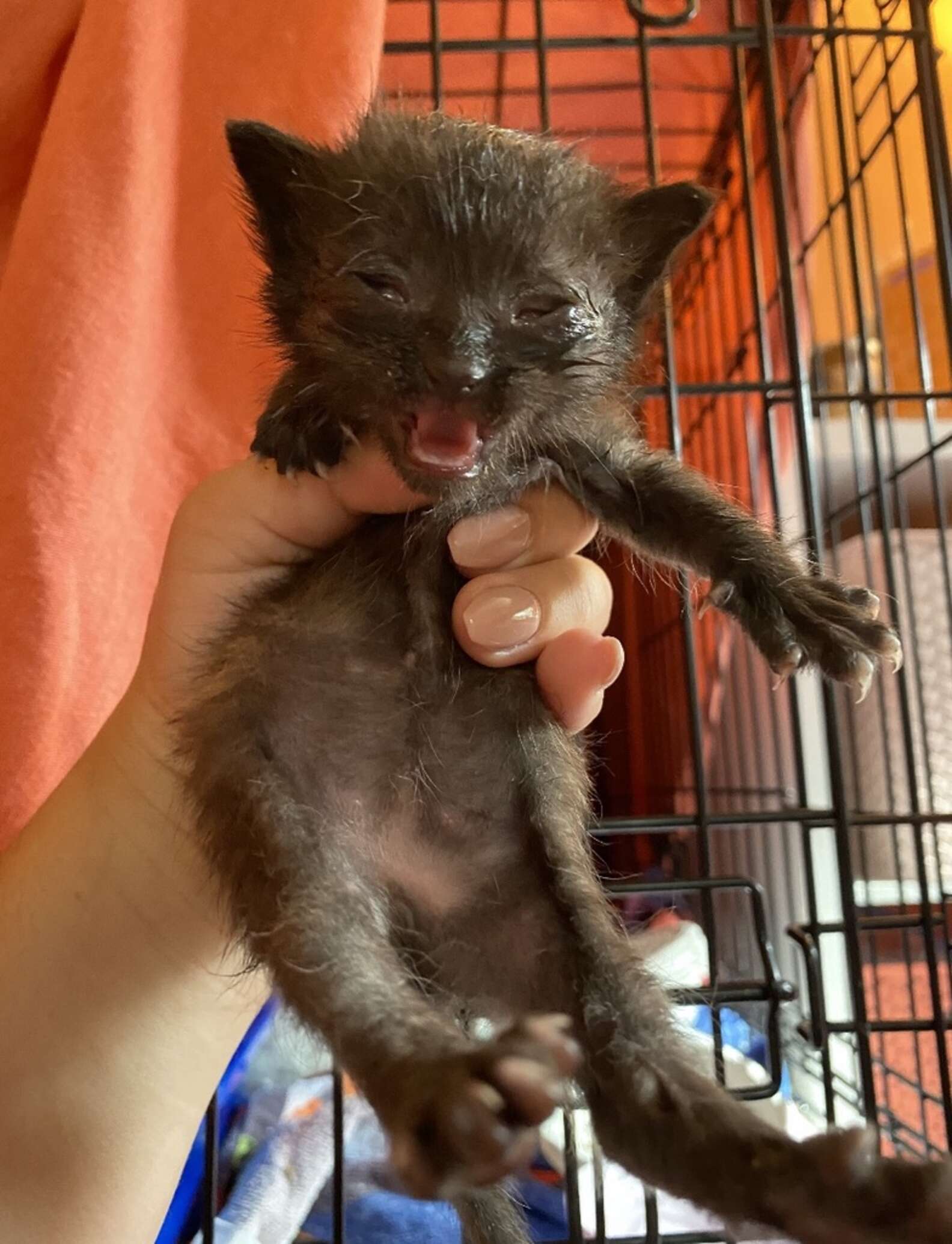 2021年03月04日不久前動物救援組織「Foster the Furbabies」救助了一窩小浪貓。這些小貓只有3週大,牠們被發現時正在大雨中瑟瑟發抖。獸醫檢查發現,小貓們身體狀況很差,不僅皮膚發炎,呼吸道和眼睛還有狀況。Meredith就是這一窩貓咪裡最小、最弱的那一隻。