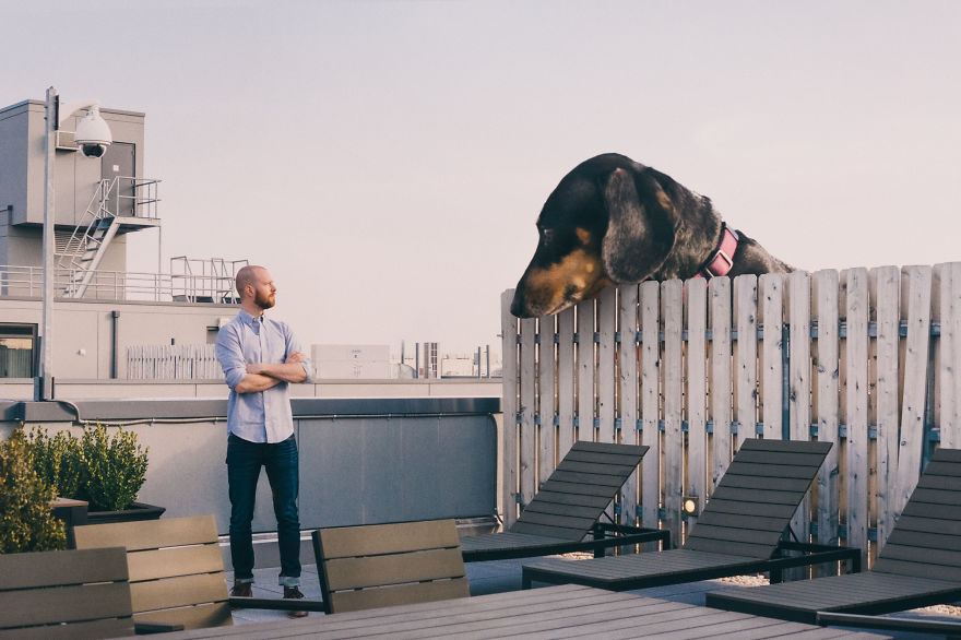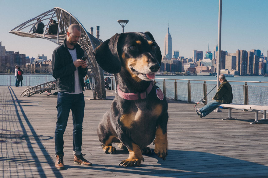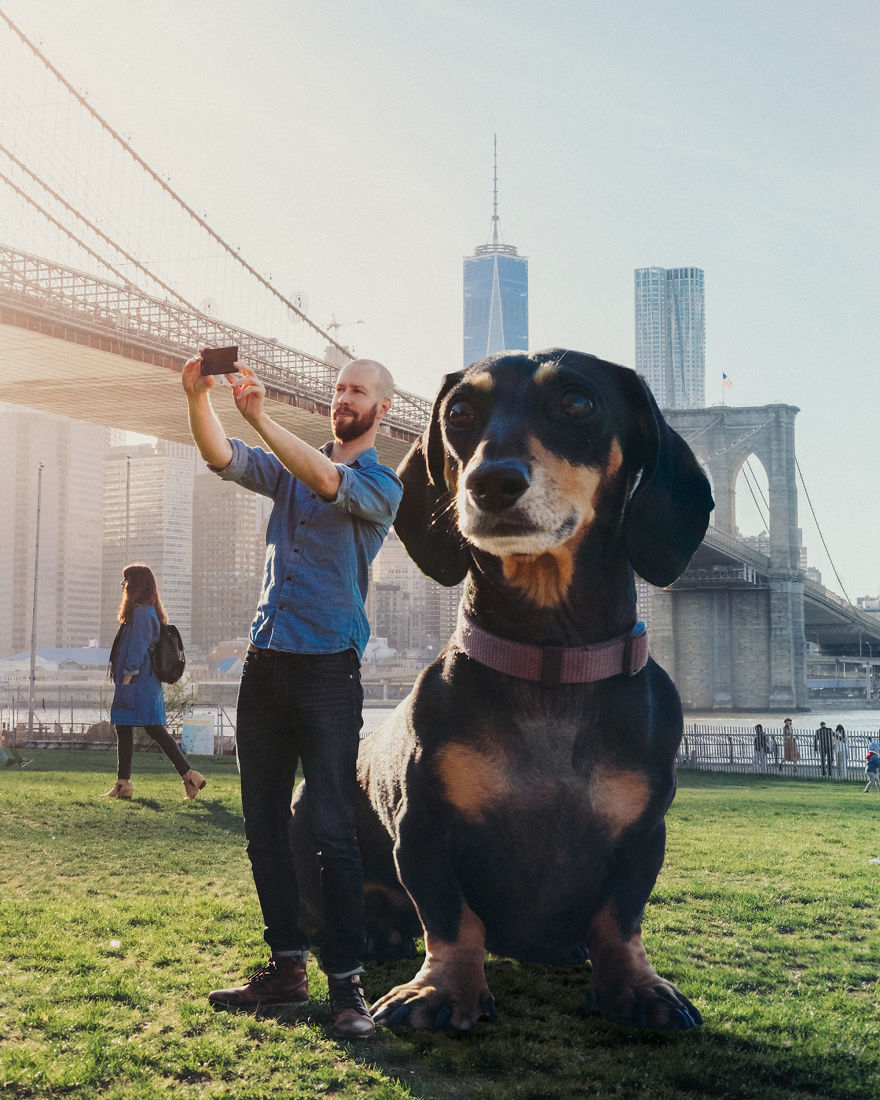 2021年02月28日住在美國布魯克林區的Mitch Boyer養了一隻叫Vivian的臘腸犬。Vivian體型不大,卻非常自信,總覺得自己「最大」。Mitch覺得很搞笑,於是利用修圖軟體讓狗狗看起來跟自己差不多一樣高大,這些荒誕又有趣的照片讓網友們笑翻了。