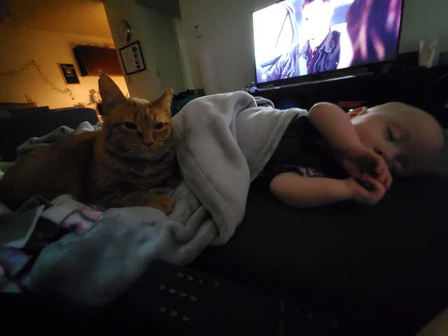 ▼爸爸媽媽本以為Sunny和Hazel不會成為朋友,沒想到很快就迎來了轉機。平時Sunny都在爸爸媽媽的床上睡,但那天晚上牠沒有出現。爸爸媽媽查看嬰兒監視器時,才發現這隻不喜歡跑跳的貓咪費力跳到了嬰兒床上,靠著小主人睡了好幾個小時。