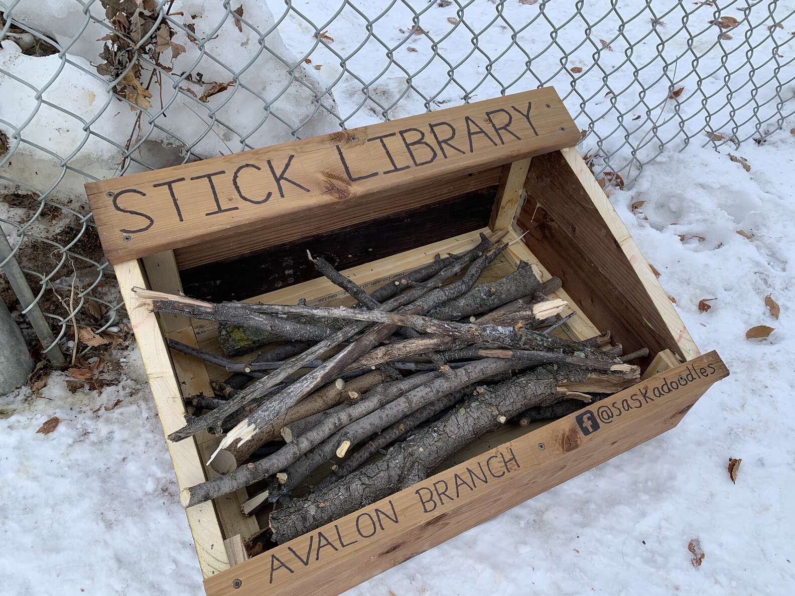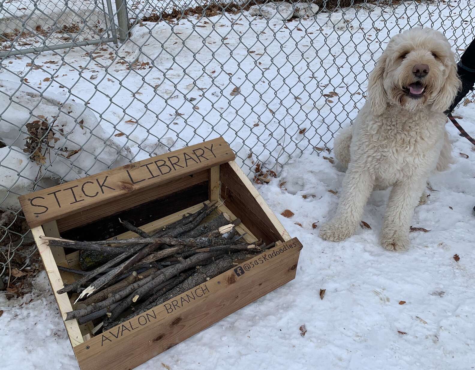 ▼Carter從社群網站上看到有人在狗公園設立「棍棍圖書館」,他知道Nahla喜歡玩棍棍,於是和10歲的兒子Jeremiah一起,在自家附近的狗公園也設立了一個這樣的「圖書館」。
