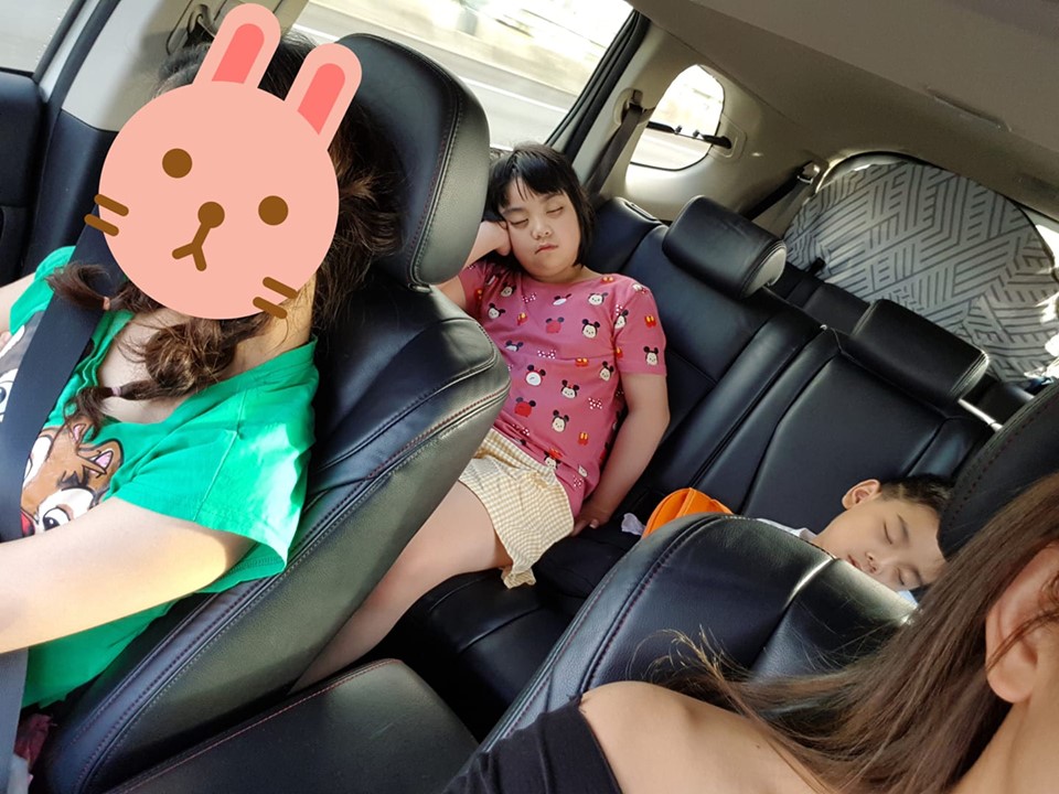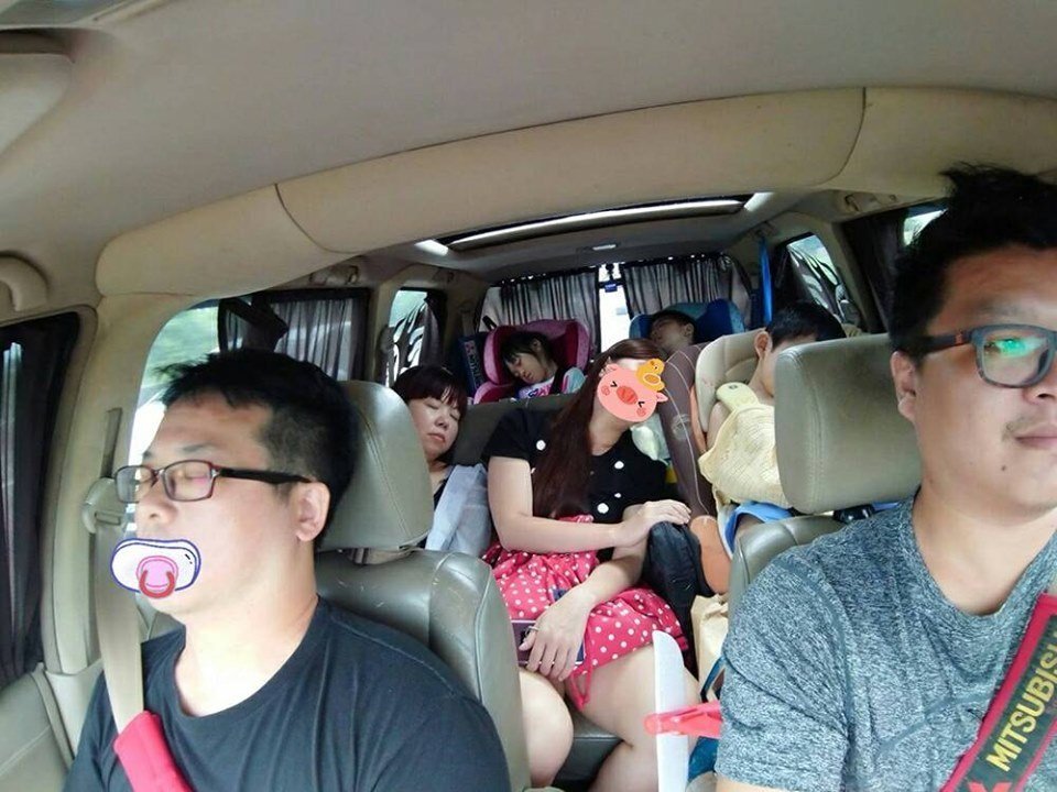 ▼原來在回程時,全家人除了駕駛之外都睡成一片,讓身為駕駛的爸爸超無奈的。