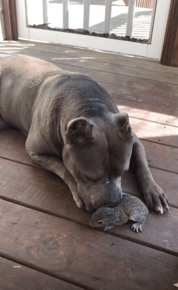 ▼Everly和松鼠整天都待在一起。Everly很關心松鼠的健康和安全,還會主動聞牠、舔牠。Groves經常拍攝牠們相處的有愛日常,並將照片po到Instagram上。