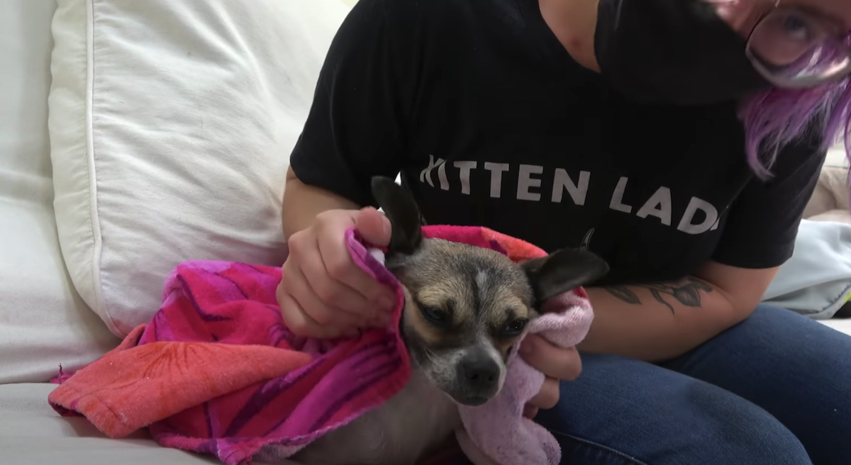 ▼JoAnn和Katie將狗狗帶去獸醫院檢查,牠的健康狀況良好。Frijoles是一隻很親人的狗狗,牠很享受大家的摸摸和擁抱。動物救援組織將牠送到寄養家庭,不久後牠就能開放領養,尋找永遠的家了: