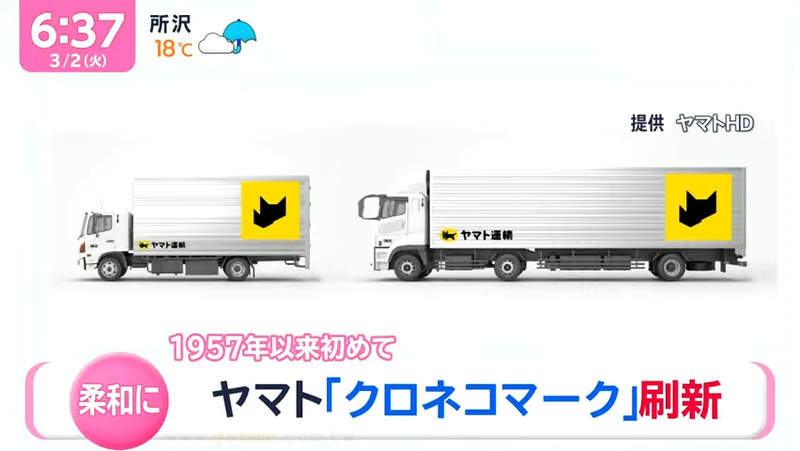 ▼日本電視台也有報導,「黑貓宅急便」的商標要變更了,新設計更加柔和。