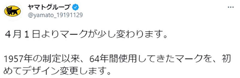 2021年03月06日最近日本知名物流公司「黑貓宅急便」(クロネコヤマト)宣布,從下個月開始要使用新商標。要知道,黑貓的舊商標是1957年開始使用的,已經有64年的歷史了,變更商標的消息一出,立刻引發熱議。很多網友懷念舊商標,還有人覺得新商標的設計超恐怖。雖然新舊商標整體看起來變化不大,但網友們莫名覺得新商標很詭異。