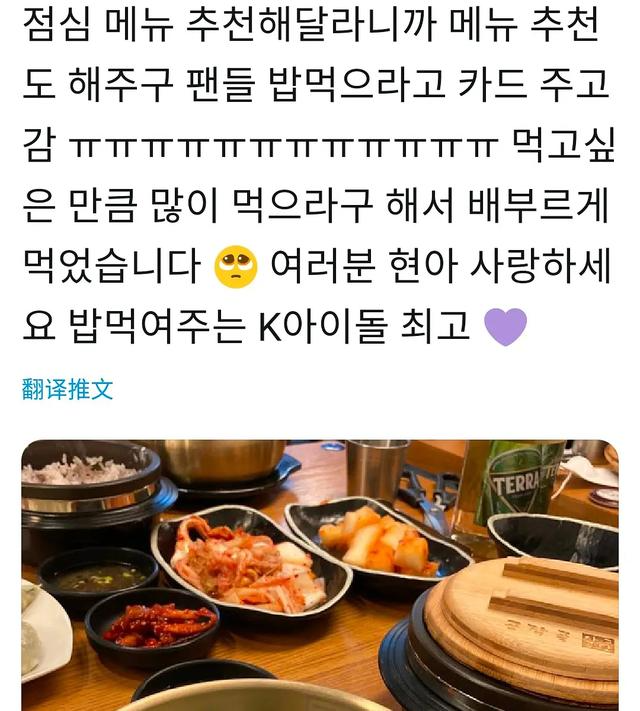 ▼久違回歸的泫雅因為新專輯引發關注,還有粉絲分享她的暖心反應援行為。那位粉絲在推特上說,泫雅對自己的鐵粉一向出手大方,那天粉絲在餐廳外遇到泫雅和她的經紀人,當下立刻上去搭話。談話過程中,粉絲開玩笑指著旁邊的餐廳,推薦泫雅去用餐,沒想到泫雅真的聽信粉絲的推薦,還拿出自己的信用卡霸氣說:「想吃多少就吃多少!」