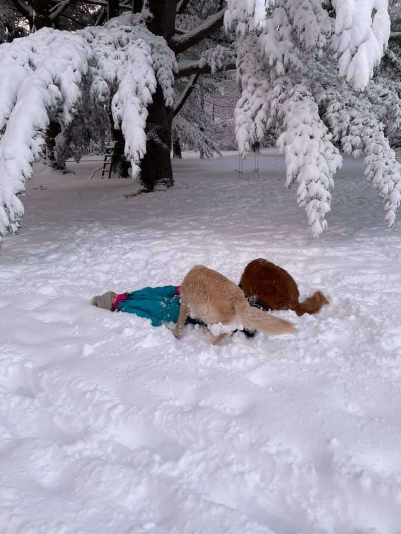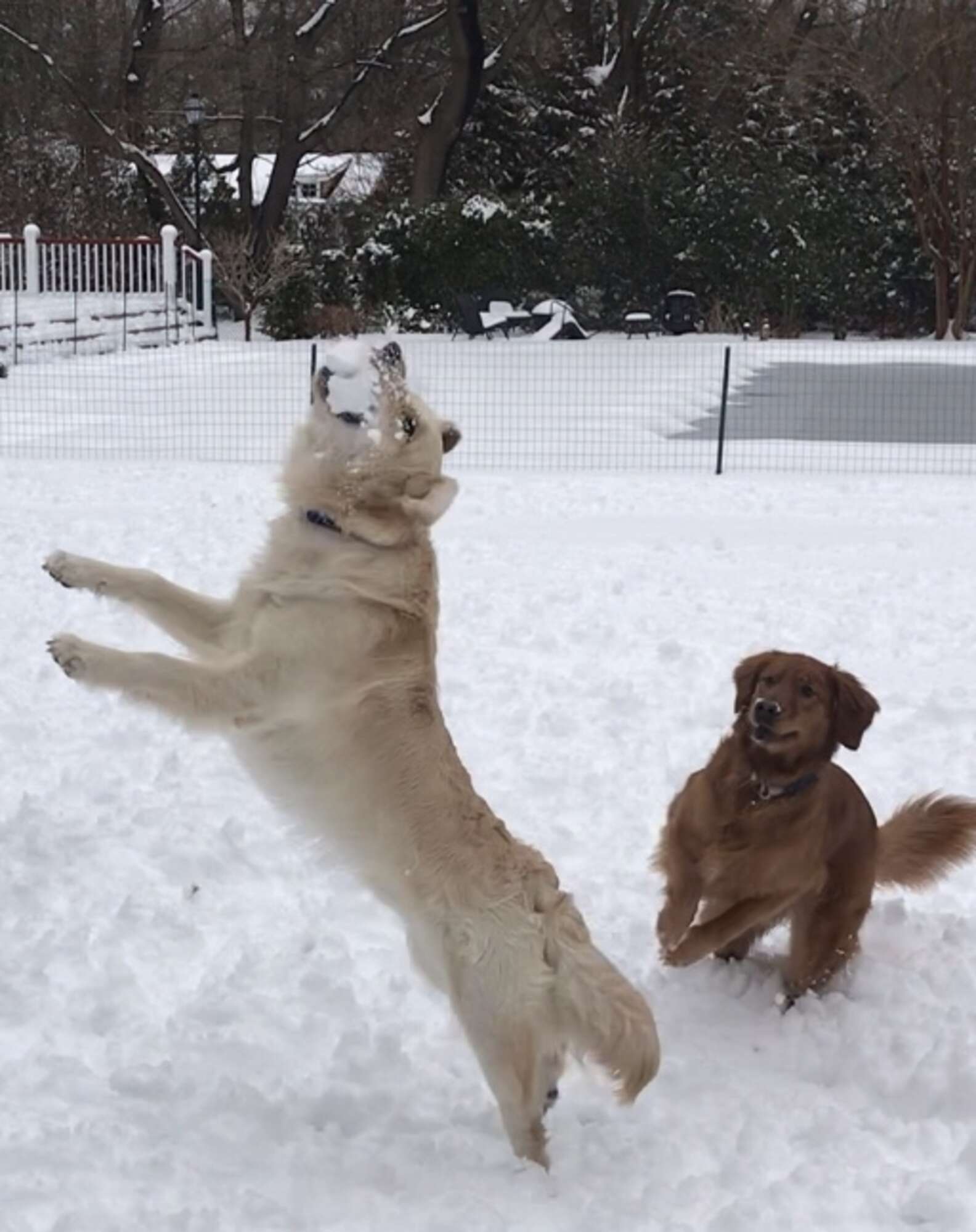 ▼Masterson說:「Ace有自己的想法,如果牠在室外玩得很開心,就誰的話都不聽,不管我們拿美食還是玩具引誘牠,牠都不會回家。Murphy相對來說乖巧一些,除非Ace堅持在外面,否則我們一叫牠就回來了。不過下雪天就不一樣了,Ace和Murphy都很愛玩雪,會在雪地裡玩到不想回家。」
