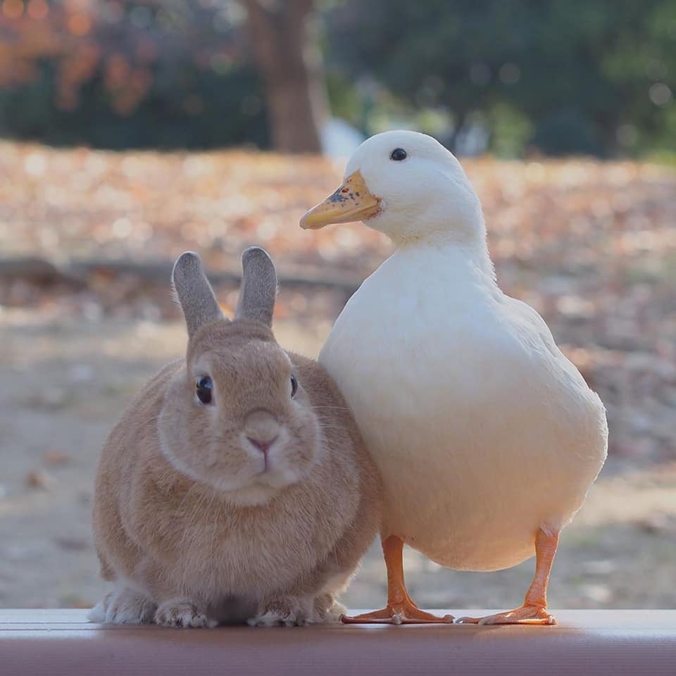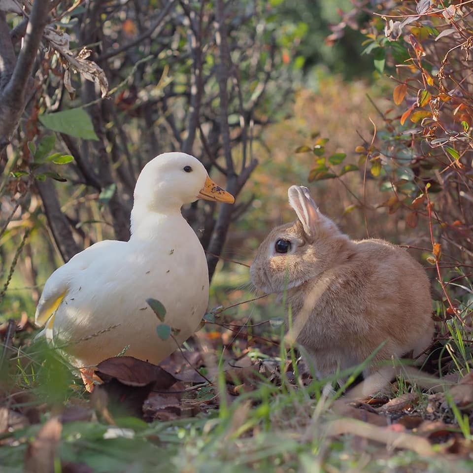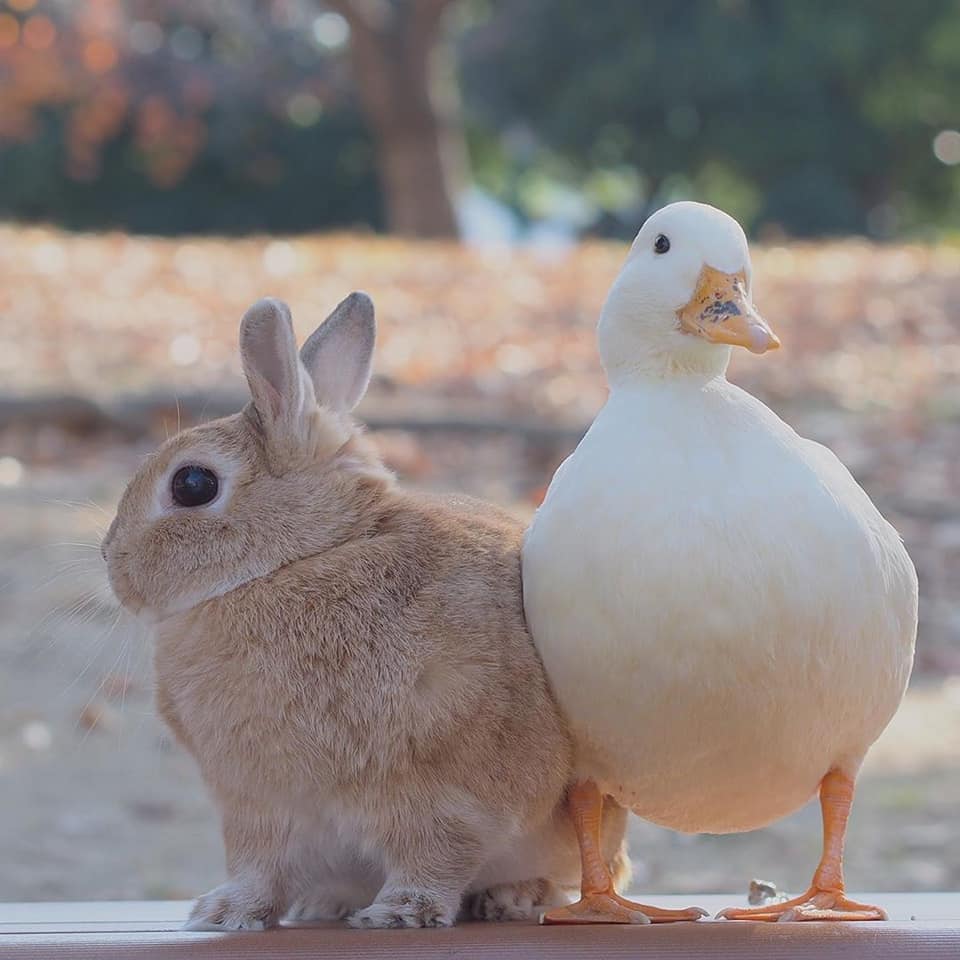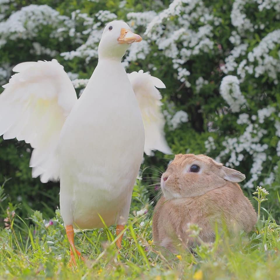 鴨鴨(Instagram)和兔兔(Instagram)的友誼夢幻溫馨,不同物種的動物也能和平相處、感情深厚,這樣的互動暖暖的好甜美!