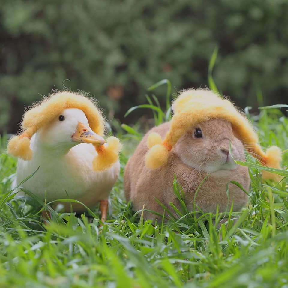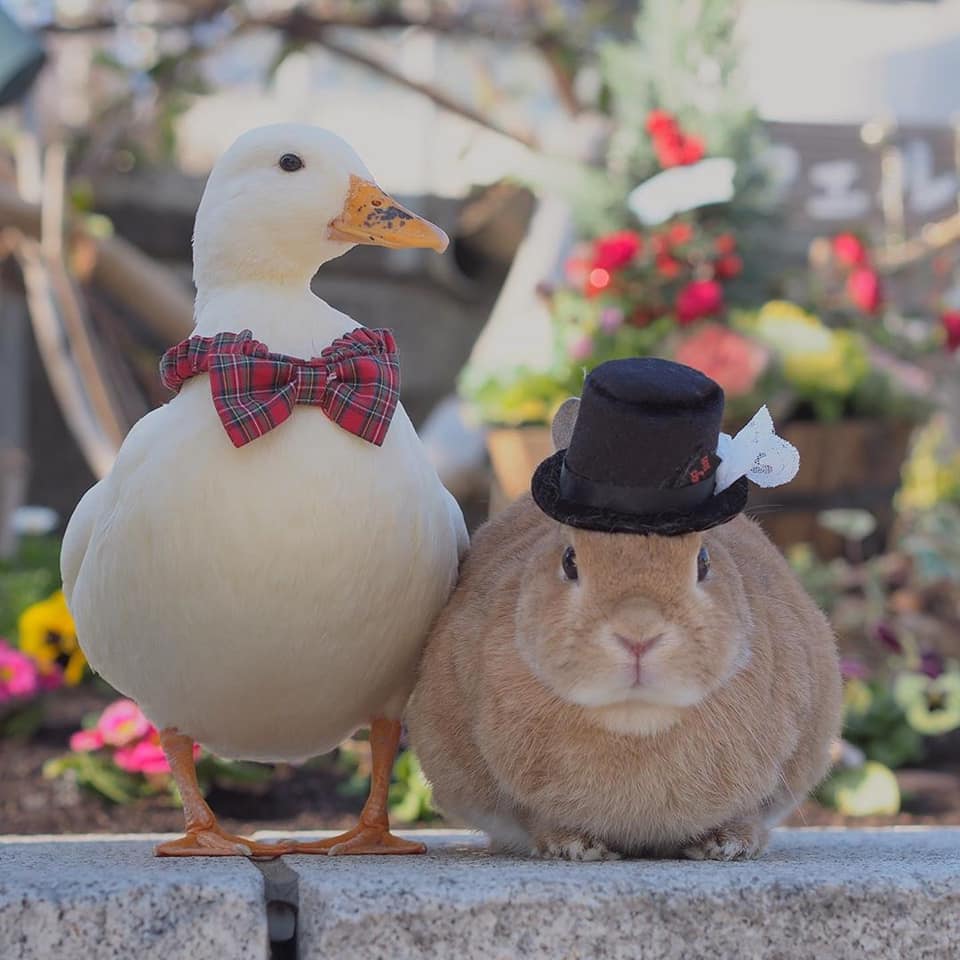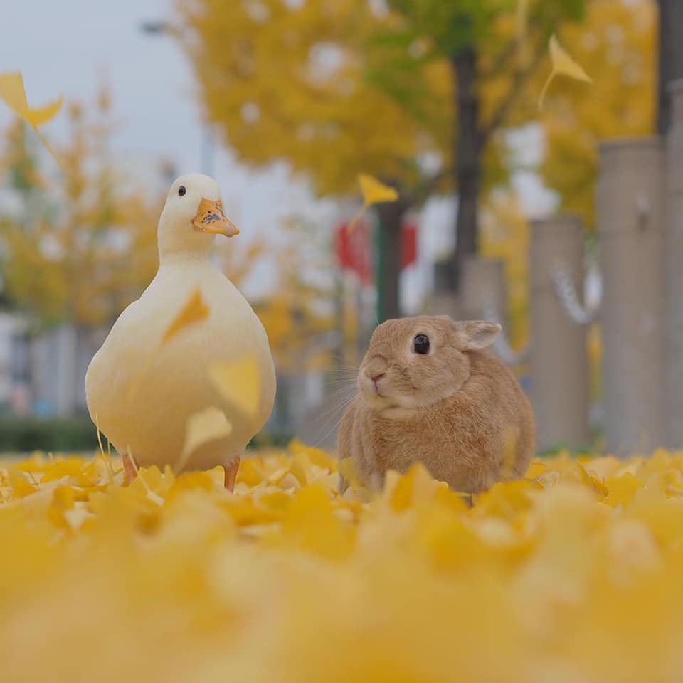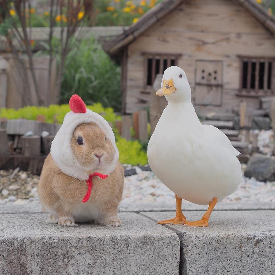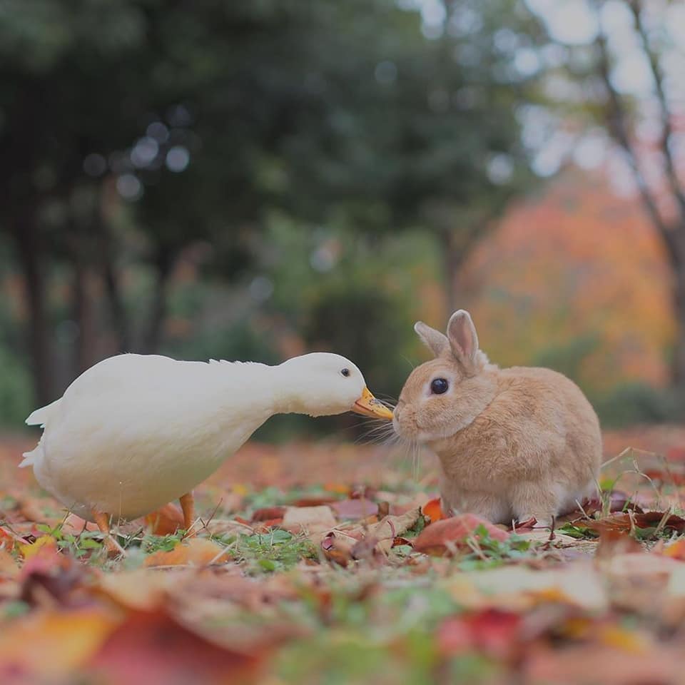 鴨鴨(Instagram)和兔兔(Instagram)的友誼夢幻溫馨,不同物種的動物也能和平相處、感情深厚,這樣的互動暖暖的好甜美!