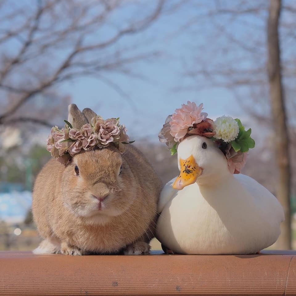 2021年03月09日不同物種的動物也能成為好朋友!日本有一隻兔兔Cookie,跟另一隻白色鴨鴨Haru是好朋友。牠們由2個不同的主人飼養,但感情非常好,幾乎整天一起玩。主人經常在Instagram上分享牠們的萌照,兔兔和鴨鴨的互動非常療癒,現在牠們已經有10多萬粉絲了。