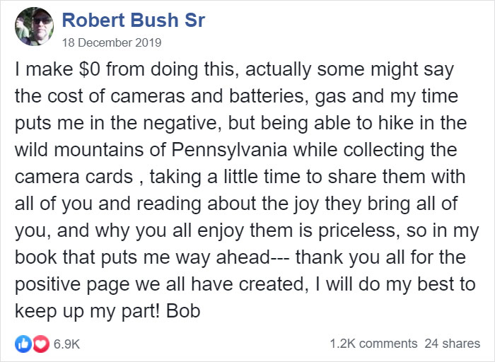 Robert的拍攝地點就在他家附近,但他沒有公布具體的位置,就是不希望有人過去干涉小動物們的生活。如果你也對野生動物、自然環境感興趣的話,就去臉書群組Bob’s Pennsylvania Wildlife Camera看看吧~