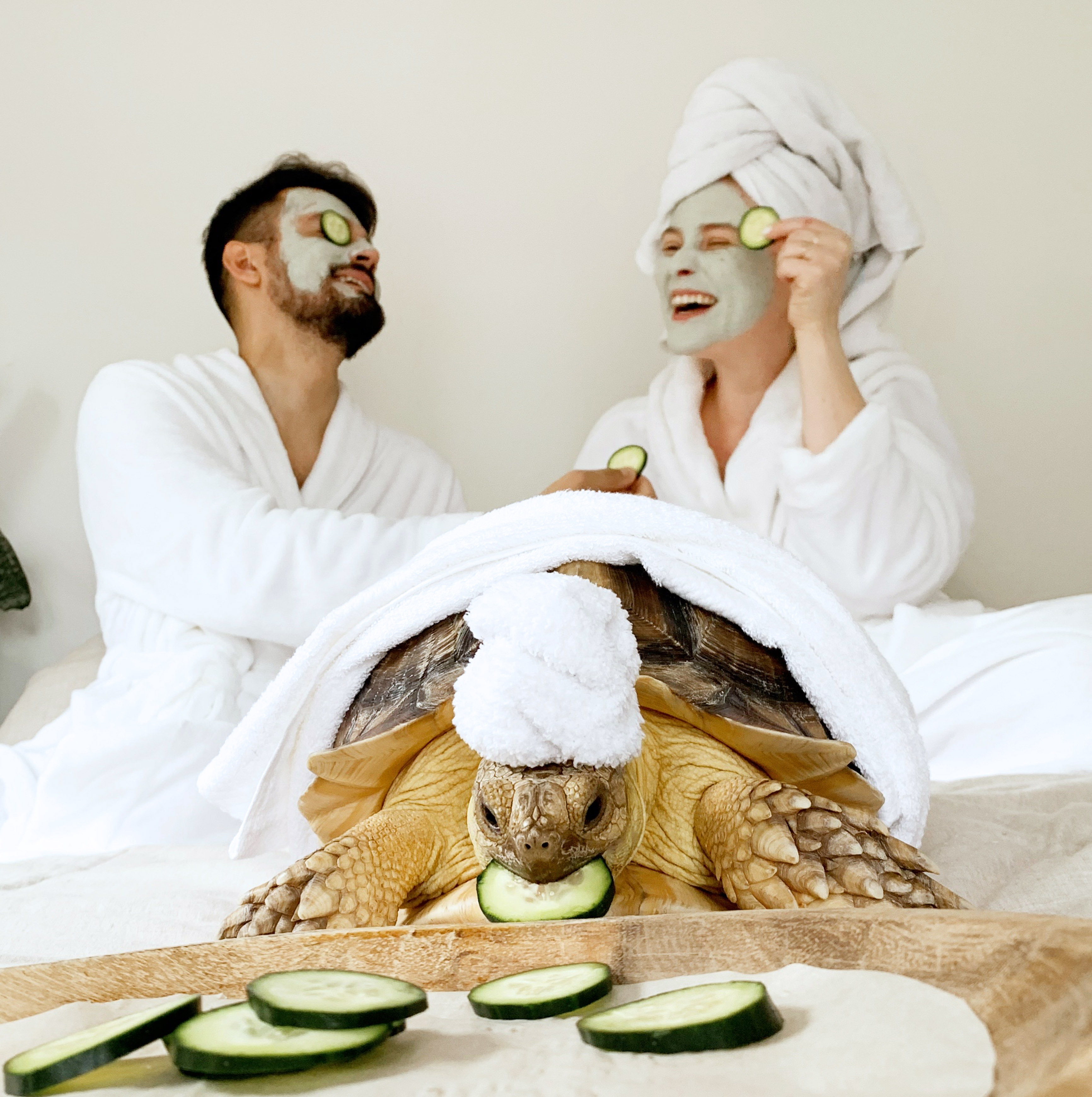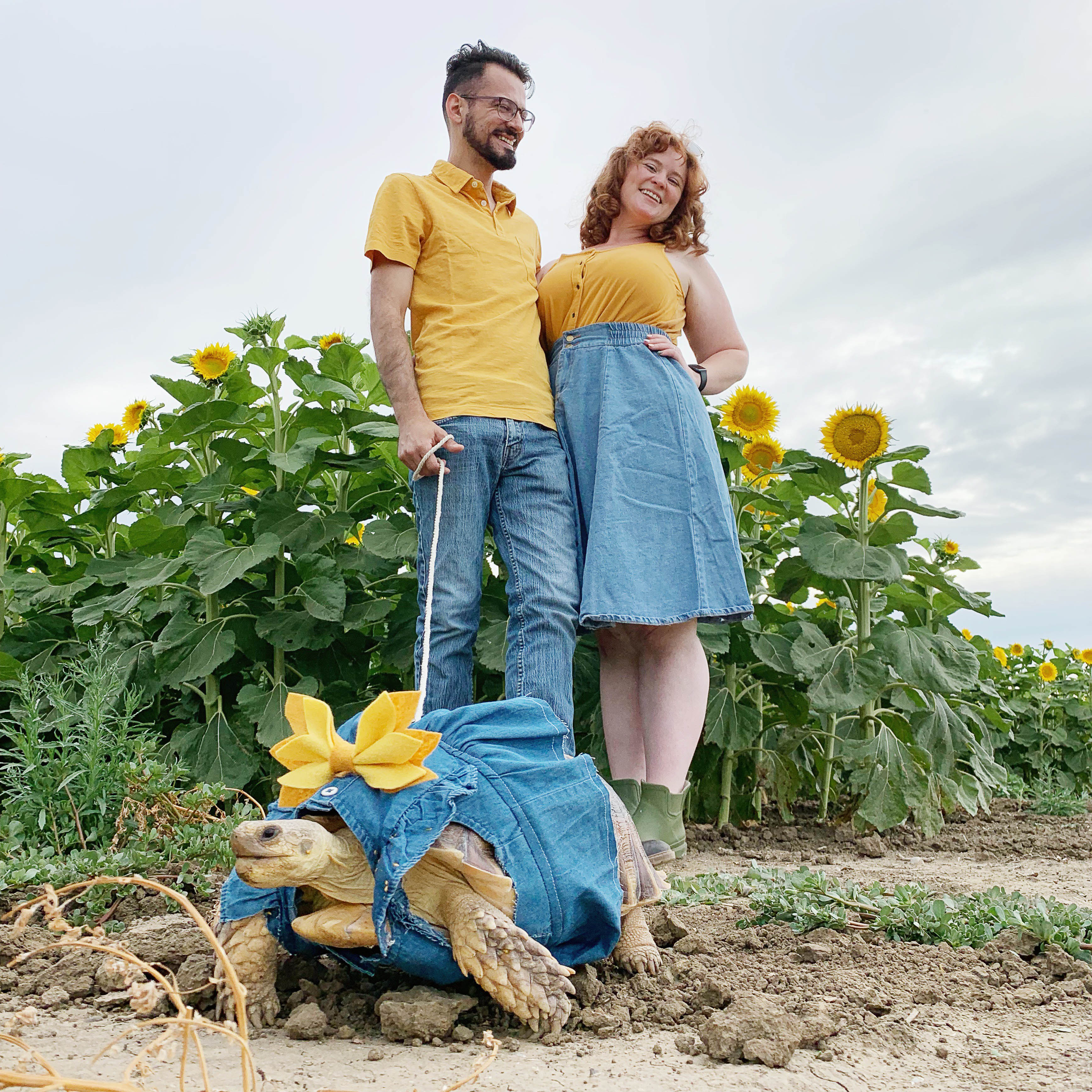 2021年03月07日現在很多爸爸媽媽會跟小孩拍親子照,用這種方式留下美好的回憶。美國加州情侶Kasey Kuchinski和Daniel Rodriguez在社群網站上看到溫馨的親子照後非常羨慕,也想拍一組類似的照片。他們沒有小孩,但有寵物烏龜。這隻叫Ethel的烏龜被裝扮起來,陪著主人拍了一張又一張甜蜜、有趣的放閃照。