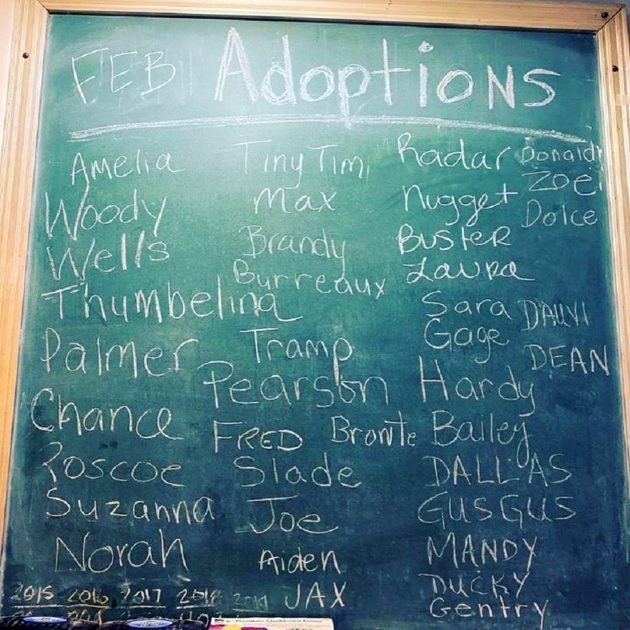 ▼人道協會會將本月被收養的狗狗名字寫在黑板上,因為Burreaux的努力,其他狗狗也得到了更多的關注。不僅是Joe和O,還有更多狗狗被順利領養。