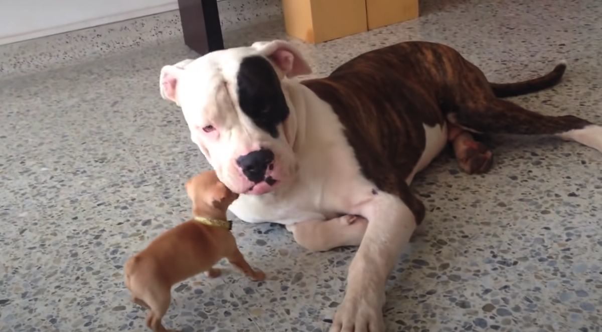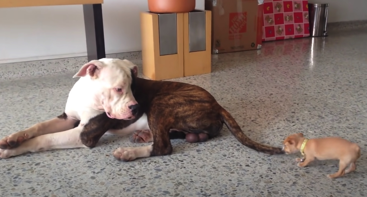 2021年03月15日都說初生牛犢不怕虎,其實初生小狗也很大膽~國外一位飼主拍下了自家2隻狗狗的可愛互動。他養了一隻體型很大,但性格溫柔的鬥牛犬,另一隻則是調皮的小奶狗。那天鬥牛犬想躺在地板上休息一下,沒想到小狗跑來找牠玩。這隻小奶狗精力充沛,好像永遠都不會累。