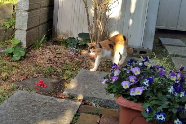 ▼過去5年經常給推主送花的是一隻三花貓。推主目睹了牠送花的瞬間,只見牠嘴巴裡叼著一朵花,默默放到玄關處就離開了。隔天牠又送來一朵,簡直超浪漫,就像童話故事一樣。
