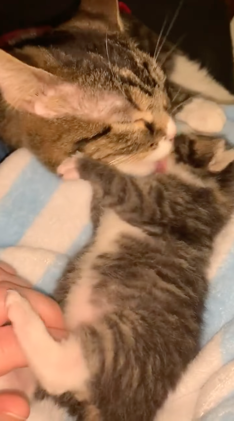 母子情深!病貓媽痊癒「重逢小孩」 秒認出狂舔:我是你媽媽啊~