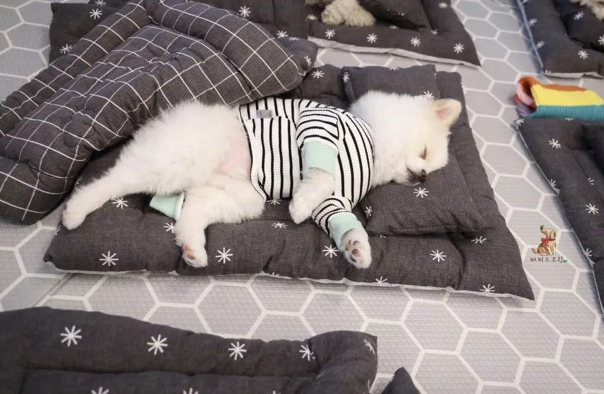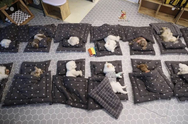▼幼兒園會為每一隻狗狗準備小被子,狗狗們排排睡,那場景超療癒。