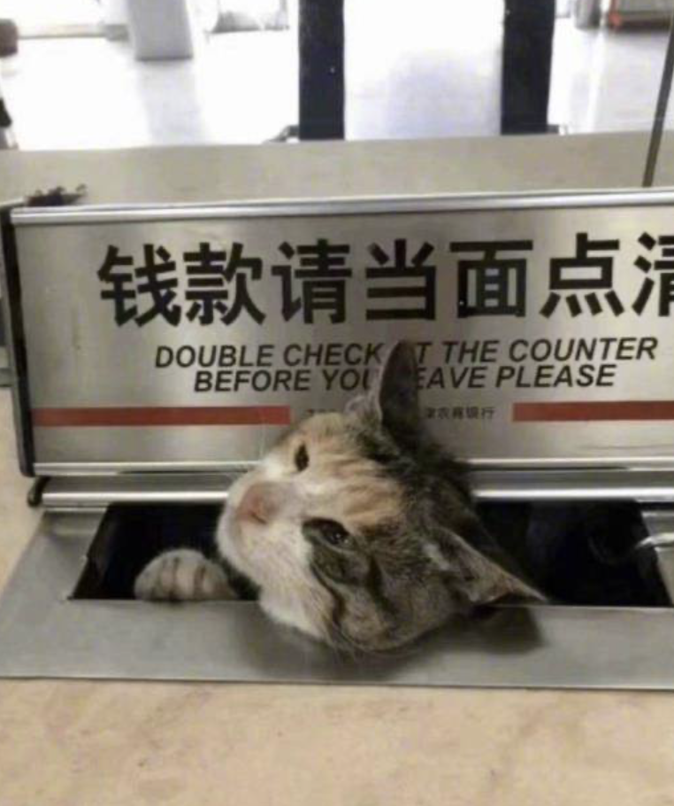 貓貓跑進銀行辦業務 高萌露頭:「您好,我要存自己~」