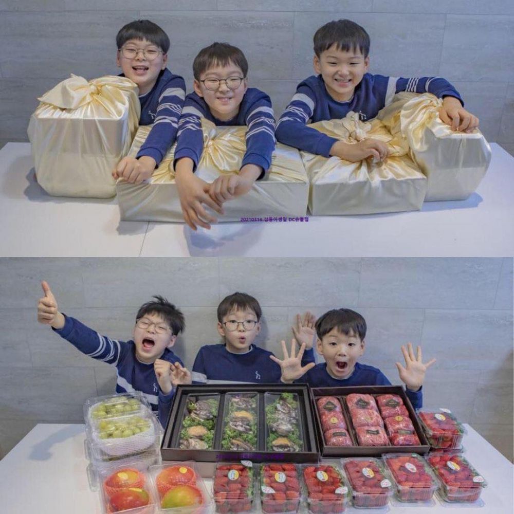 ▼現在大韓、民國、萬歲已經9歲了,南韓論壇「DC Inside」上,有網友曝光了他們的慶生照。從照片中可以看到,三胞胎穿著同樣的上衣,每人面前都擺著一個蛋糕,正對著鏡頭擺出可愛的表情。
