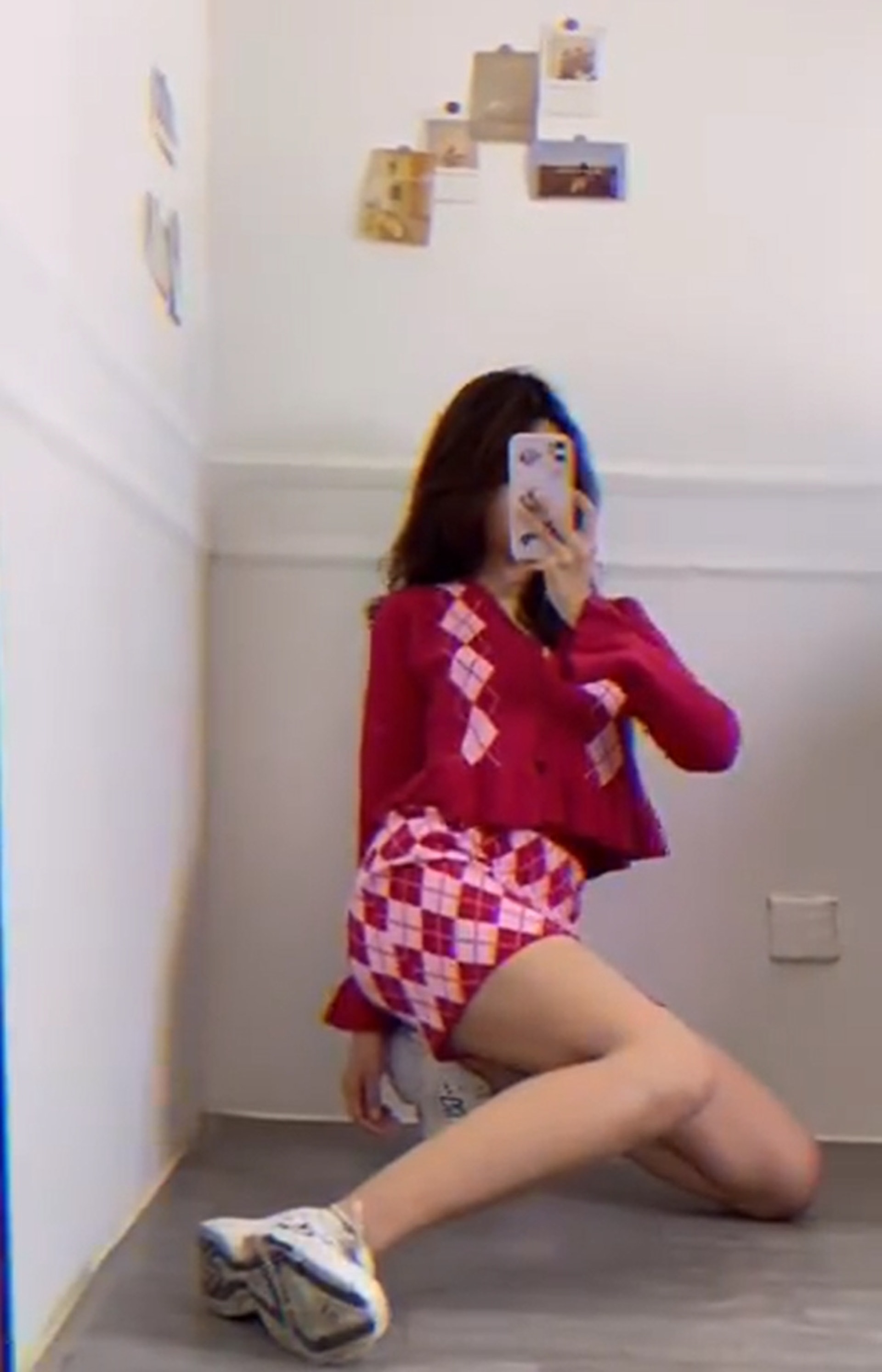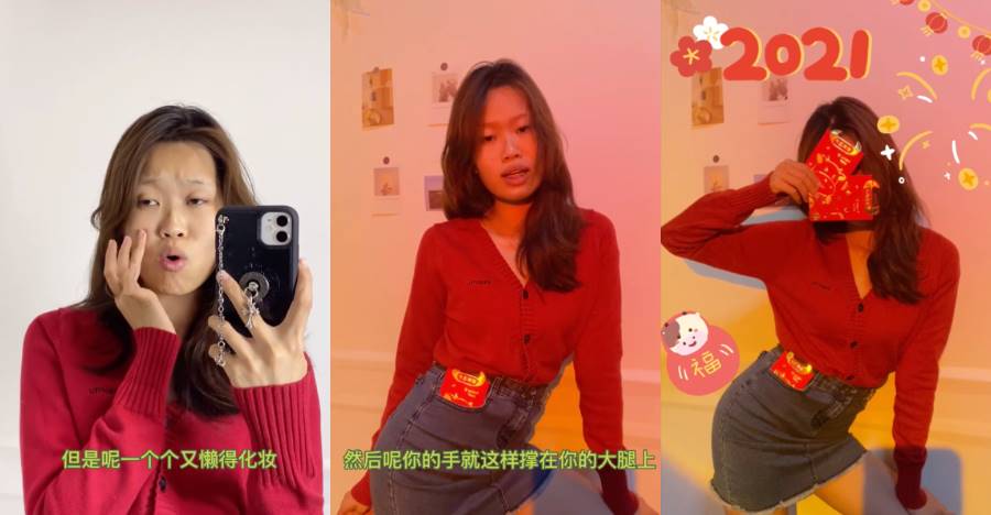 ▼懶得化妝也能拍出好看的賀年照!用手撐膝蓋、彎腰扭出S型曲線,再用紅包擋住臉,就能化身性感酷妹了。