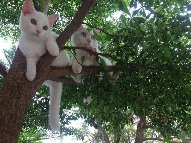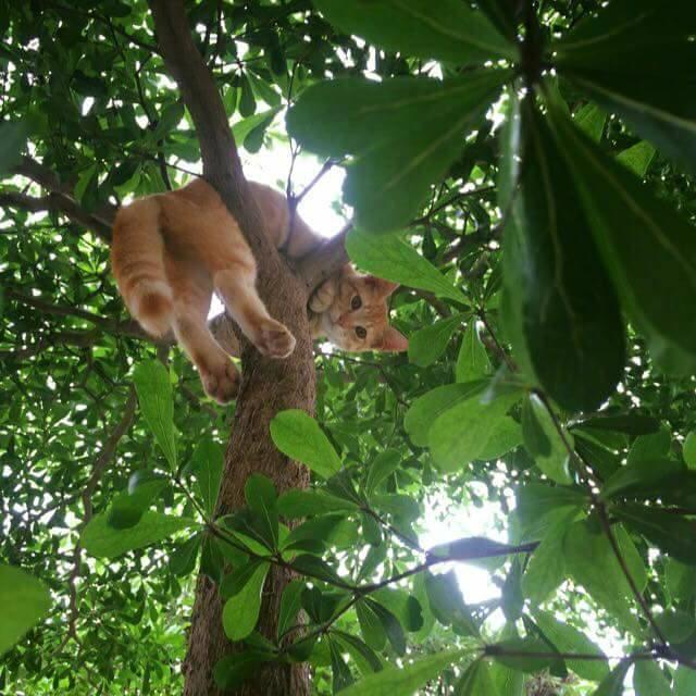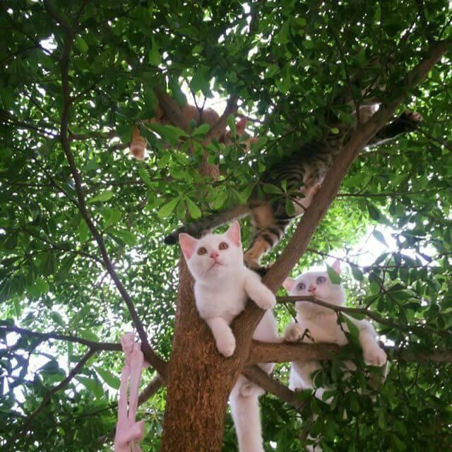 ▼天氣太熱,貓咪們也想乘涼,地面熱騰騰的,樹上就涼快多了。樹上有這麼多貓咪,這棵樹也變得與眾不同起來了。