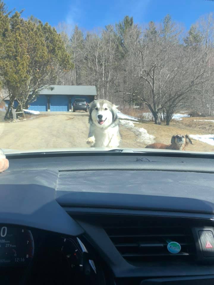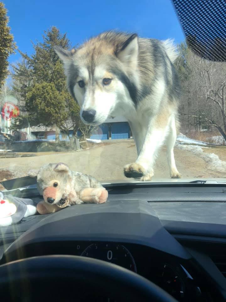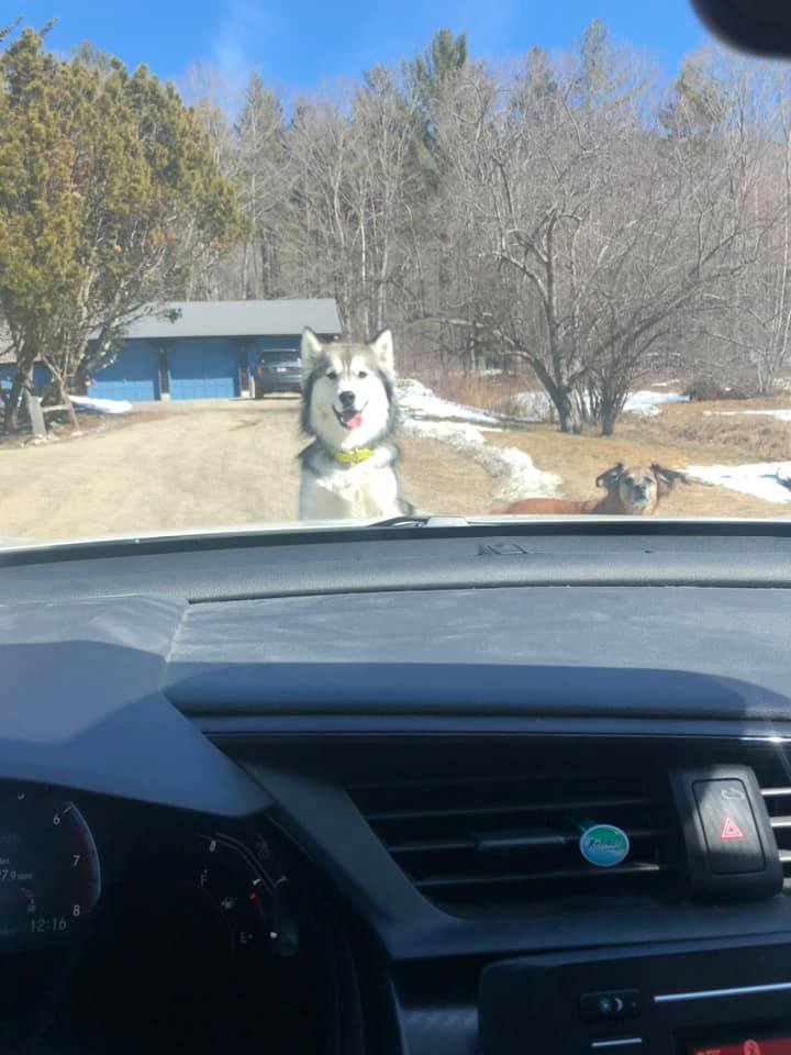 ▼Haley Janoff在狗狗社團「Dogspotting Society」分享了自己的有趣經歷。開車回家的Haley Janoff被半路出現的Nanook攔下,一臉燦笑的牠竟然帶著同伴索要肉肉。