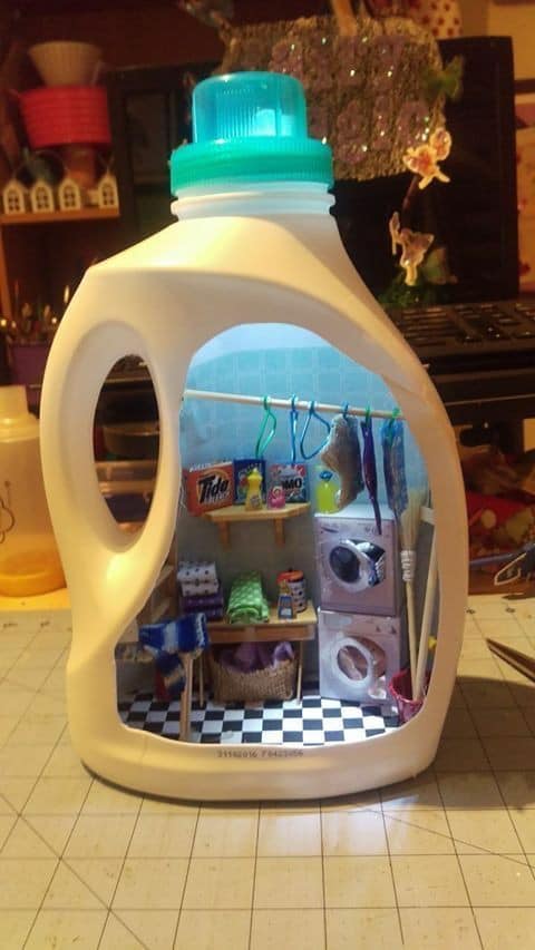 ▼洗衣精瓶子裡是一間洗衣房: