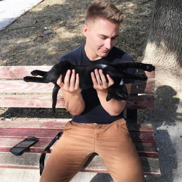 ▼Justin表示,有一天他和同伴在公園散步時遇到了Salem。Salem非常親人,正好Justin也很愛貓,就上前將牠抱在懷裡溫柔撫摸。從那之後Salem就認定了Justin。