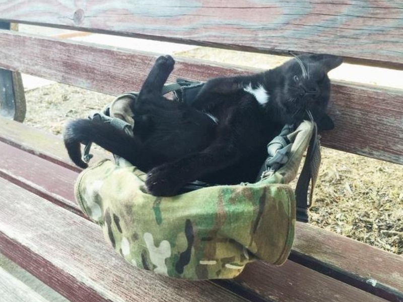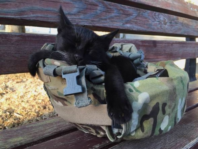▼Salem跟著Justin回到軍營,每天乖巧守在門口,還會在Justin身邊跟前跟後。只要有機會,Salem就會跳到Justin的腿上撒嬌,有時候還會窩在他的帽子上睡覺。
