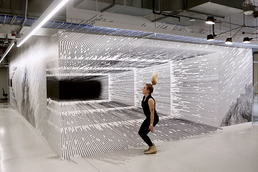 Katy的作品主要探討的是2D、垂直平面和3D空間之間的關係。誰能想到簡單的直線能夠出現那麼驚人的視覺效果呢?快去追蹤一下她的Instagram,欣賞更多夢幻作品吧~