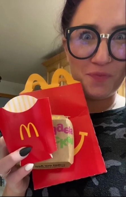 ▼Megan用氣炸鍋自製雞塊、薯條等等,比起速食店賣的食物,自己做的更加少油、更加健康。她將這些點心分別放進麥克雞塊盒和薯條紙盒裡,跟玩具一起裝到快樂兒童餐紙袋中,一眼看去跟在麥當勞裡買的一樣。