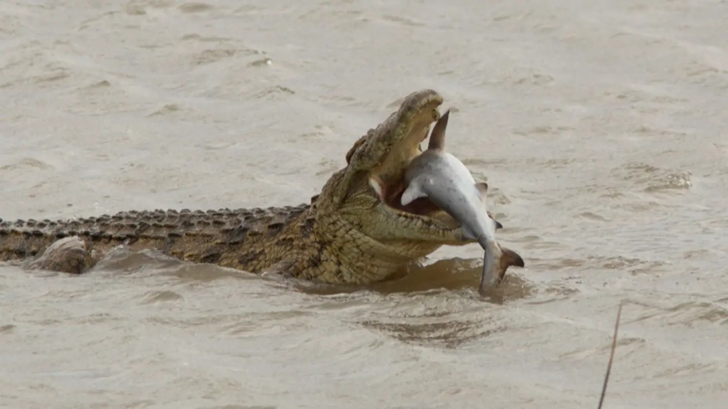 大嘴一口吞! 他捕捉罕見「鱷魚吃鯊魚」驚人一幕:像在看電影