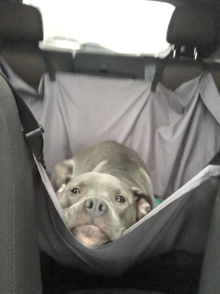 ▼為了讓狗狗乖乖待在後座特別裝了網子,但狗狗好像不太滿意: