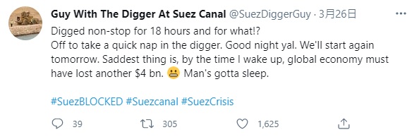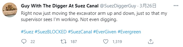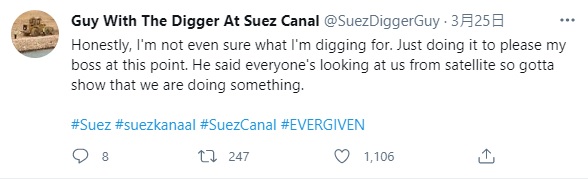 — Guy With The Digger At Suez Canal (@SuezDiggerGuy) March 29, 2021