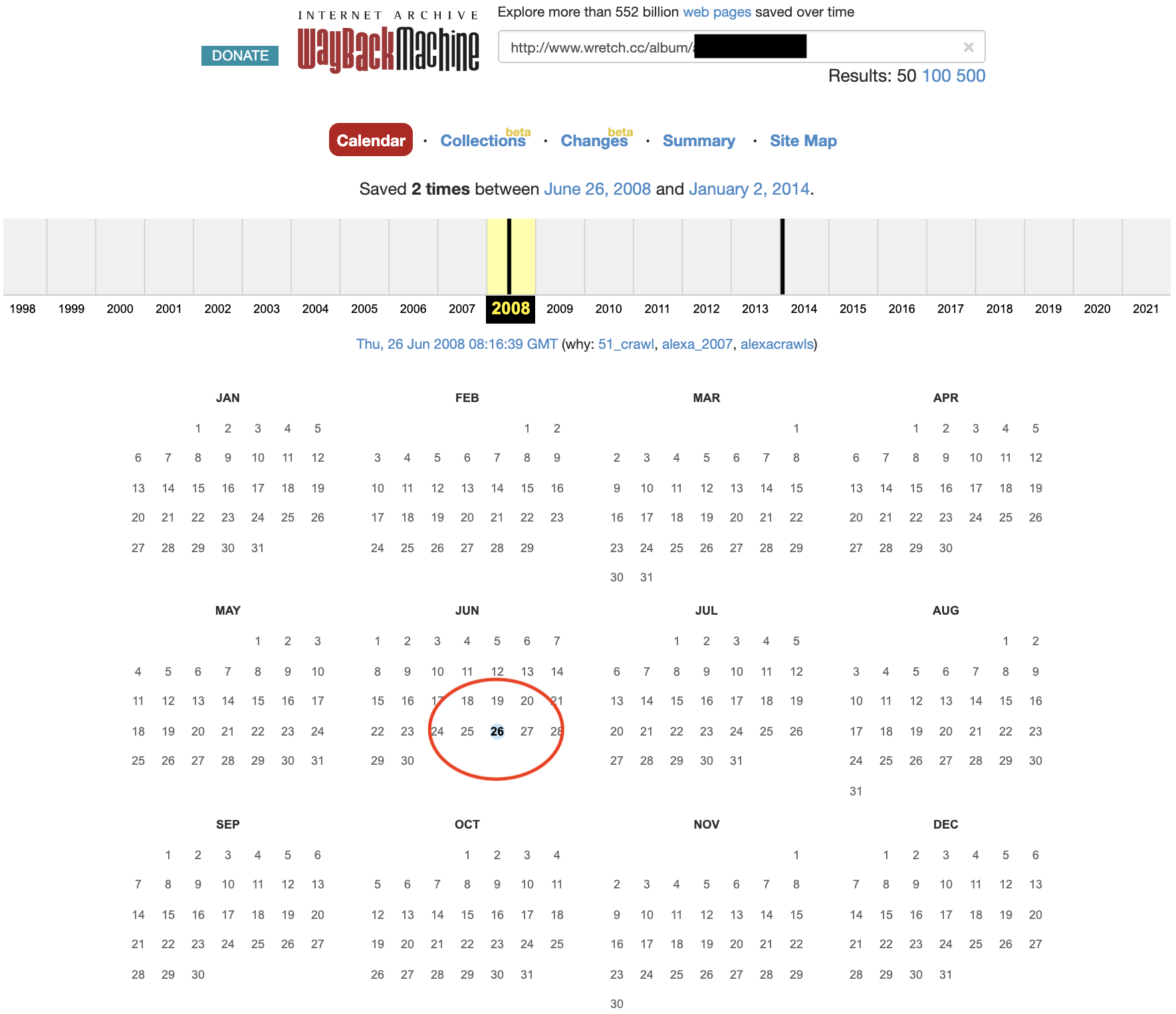 ▼現在你可以找回你的無名了!只要利用「WayBack Machine」就能重溫以前的記憶!請在欄位輸入當初的無名網址,再按下「BROWSE HISTORY」(瀏覽歷史)就可以了。有活動紀錄的那一天,日期上會顯示藍藍的,就可以點進去看看喔!
