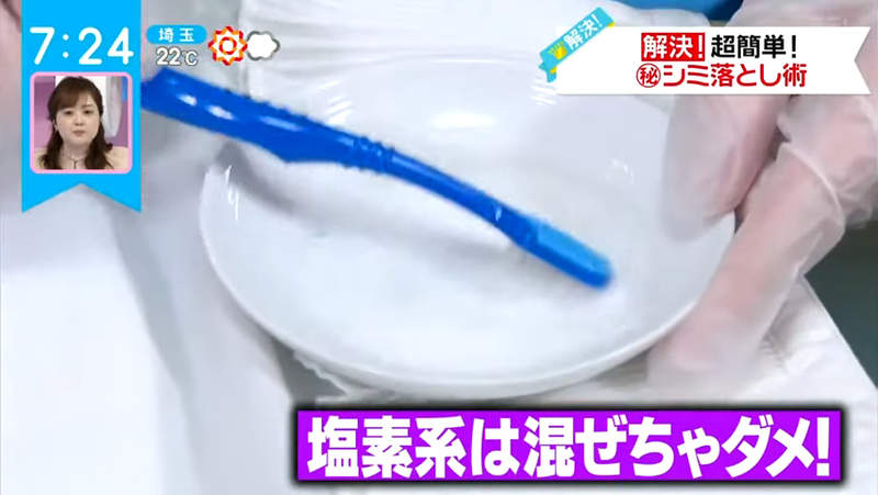 ▼神宮寺勇太先用漂白水刷洗,但還是有殘留。
