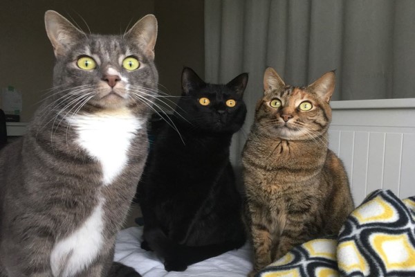 ▼這隻三色虎斑貓叫Posey,牠還有2個兄弟,黑貓Willa和白底虎斑貓Echo。主人從同一個動保組織領養了牠們3個。牠們從小一起玩到大,平時的表現很正常,但隨著貓咪漸漸長大,主人逐漸發現了Posey的獨特之處。