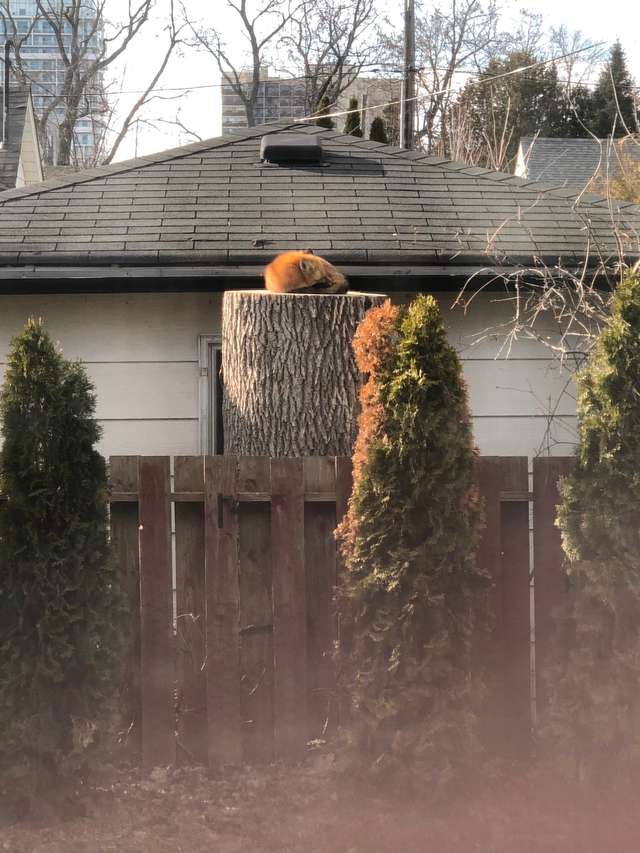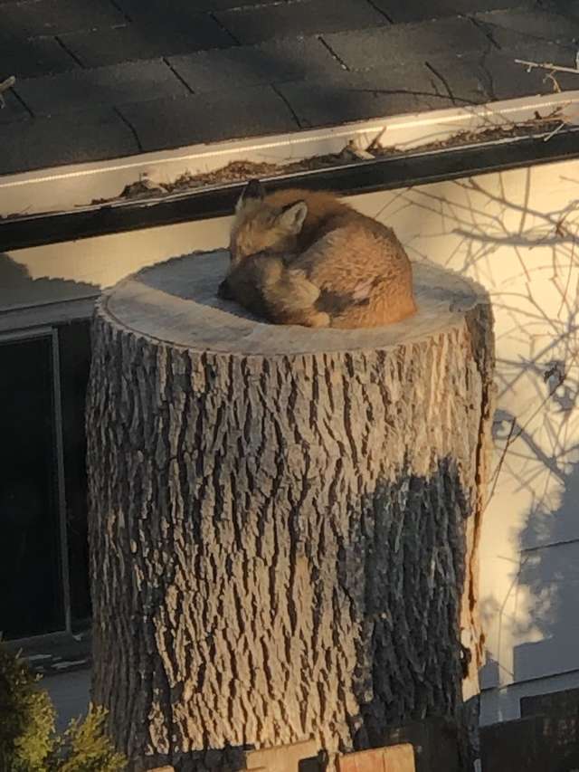 2021年04月01日近來人們全都宅在家中,雖然不能出去玩,但也能發現一些平時注意不到的風景。加拿大網友Sara Ryan的爸媽都遵守規定待在家中,他們在自家院子裡看到了可愛的一幕。一隻小狐狸竟然趴在院子裡的樹樁上酣睡,看起來非常軟萌~