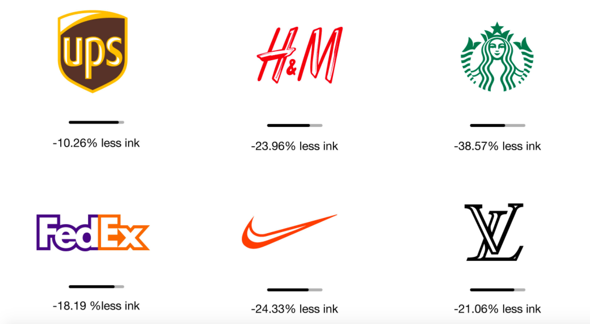▼空心LOGO設計不僅能減少墨水用量,還能降低印刷成本,但並不是所有的品牌都願意改變LOGO設計。Boyer說:「有人認為品牌LOGO是神聖的,所以不能改變原有的設計。另一方面,有人認為在保留LOGO設計精髓的前提下,可以做出一些更能迎合這個時代的改變。」