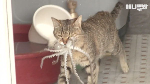 ▼韓國一間店家發現抓來的生章魚很常短少,後來才發現是附近的浪貓常來偷吃…看這身手,你肯定是慣犯吧!